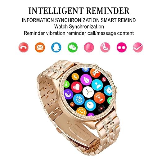 अपनी स्मार्ट एलिगेंस के साथ अपनी स्टाइल को निखारें। यह रोज़ गोल्ड स्मार्टवॉच अत्याधुनिक तकनीक और कालातीत विलासिता का संगम है। चमकदार क्रिस्टल जड़ित बेज़ल और स्टेनलेस स्टील स्ट्रैप के साथ, यह एक अलग पहचान बनाने के लिए डिज़ाइन की गई है—आपको कनेक्टेड और नियंत्रण में रखते हुए।